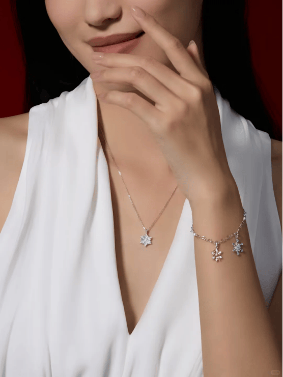 DR OUR DAY系列的初雪·恋恋誓约(2025限定款)套链,也是非常适合圣诞节氛围的一款作品。这款套链的灵感源自冬日的第一片雪花,灵巧爱心环绕成雪花花瓣,铭记恋人每年互许誓约的浪漫时刻,吊坠以天然母贝作底,每颗拥有专属纹路,正如每一片雪花都独一无二,每一朵DR雪花吊坠都珍藏一份宝贵记忆。