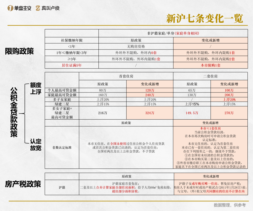 1、外地人的买房社保条件从3年变成1年,也就是整个上海针对外地人的社保门槛变成了1年2、外地人社保满3年买房资质等同于上海户籍的标准