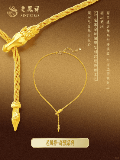 从古典工艺的传承到文化符号的转译,从视觉美感的营造到情感共鸣的唤醒,老凤祥「马力全开」系列始终在守正与创新之间寻找精妙平衡。传统技法为作品筑牢了厚重的文化底蕴,让每一处细节都浸润着时光的温润;现代设计则贴合当代人的审美与生活方式,让千年文化图腾走出博物馆的陈列柜,成为可日常佩戴、可寄托情感的随身之物。