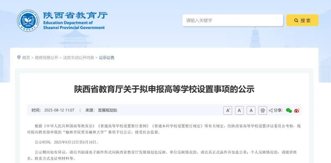榆林学院是今年最值得关注的 “潜力股”,陕西省教育厅已经公示了它更名 “榆林大学” 的方案,就等教育部最终点头,2026 年大概率能成功 “转正”。