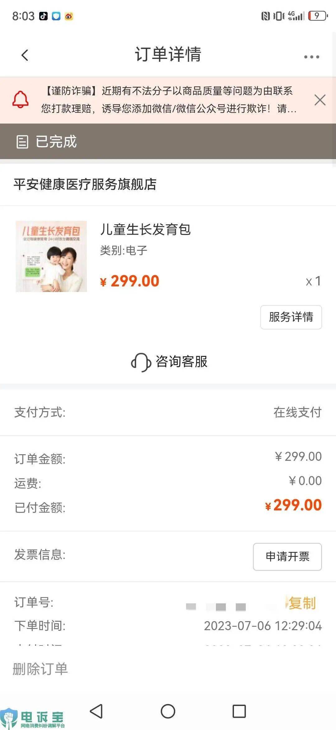 2024年12月27日,广东肖女士向电诉宝投诉,称平安健康app未提示产品激活有效期,购买儿童生长发育包后因过期被拒退款。肖女士2023年7月6日购买该产品,平台未告知激活时限,后续使用时被告知已失效且不予退款延期。